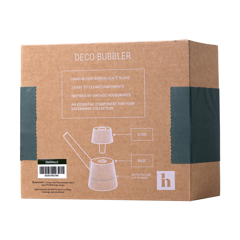 The Deco bubbler from NWTN Home is a beautifully designed glass piece that delivers refined flower hits. Simply fill the base with water, add you flower to the slide and you've got a sleek and discrete bubbler. The separate pieces make cleaning a breeze while the vintage inspired design is a fun addition to your room. Each deco features ribbed glass and bold styling inspired by Art Deco glassware.