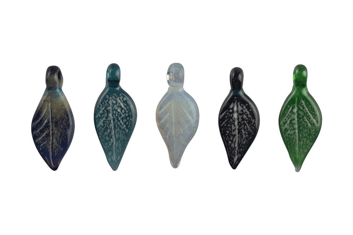These fun Glass Leaf Pendants were made here in Denver, Colorado by Biting Glass. Each leaf features an integrated bail, carved texture and vibrant glass colors. Show off your love of local glass with these minimalist pendants sure to accent any outfit.