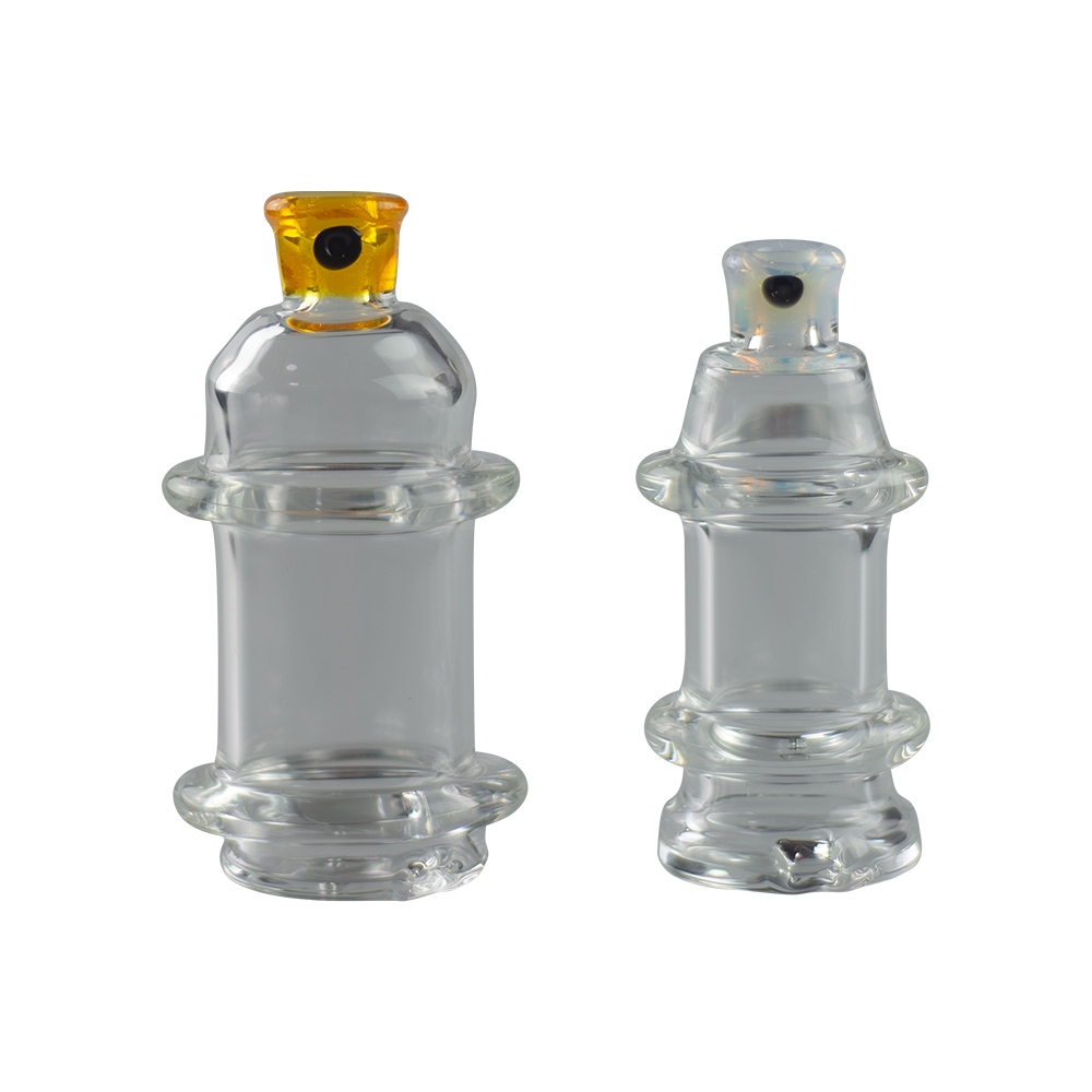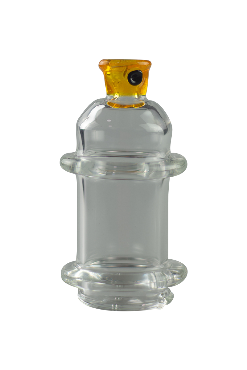 These fun Spray Can Puffco Peak Dry Tops by Technicolor Tony work on the Peak and Peak Pro as a stylish replacement for the stock glass. As a dry top it doesn't have any water inside, but cools your vapor through contact with the glass surfaces ensuring maximum flavor. Each top features a clear body with a fun pop of color for the "nozzle" mouthpiece.