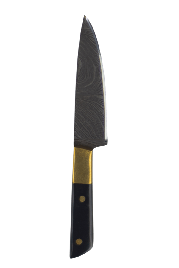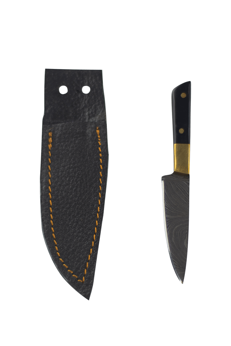 Das Kochmesser-Dab-Tool verfügt über einen Griff mit zwei Stiften und misst 4 Zoll. Jedes Stück ist ein Unikat und weist ein einzigartiges Damastmuster auf der Klinge und dem individuellen Griff auf. Beginnen Sie mit dem Aufschlagen von Platten wie mit einem Michelin-Stern Koch!