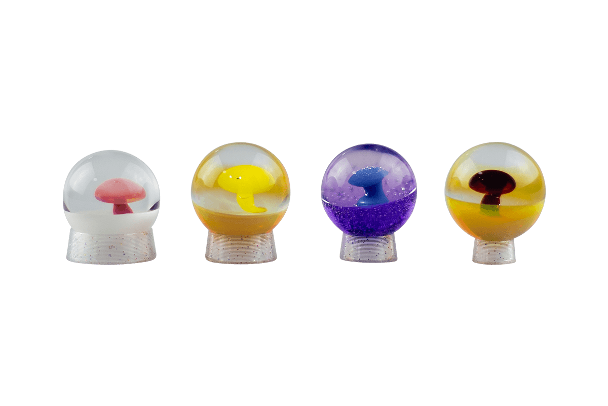 These fun Colorful Mushroom Marbles by Biting Glass feature a vibrant mushroom accented by a complementary color background. Available in a variety of colors, each handmade borosilicate mushroom is made here in Denver, Colorado and ready to accent your space.