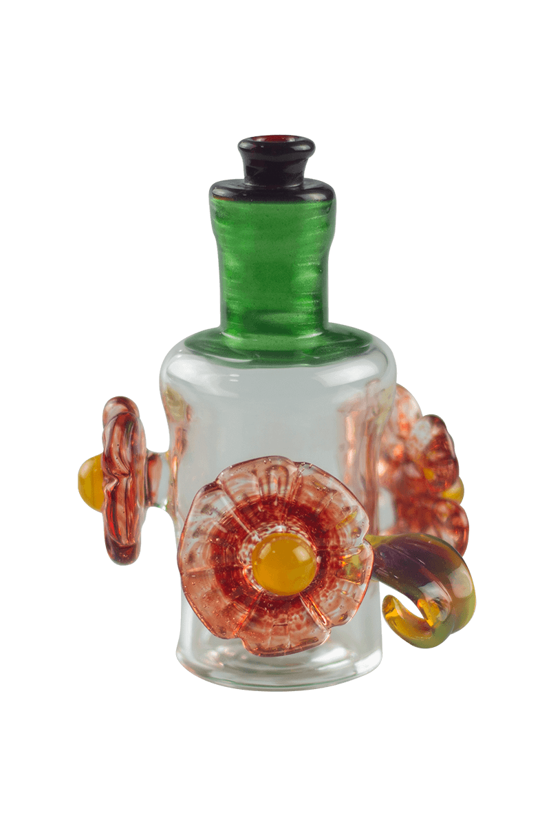 This beautiful Flower Garden Puffco Peak Dry Top by Technicolor Tony works on the Peak and Peak Pro as a stylish replacement for the stock glass. As a dry top it doesn't have any water inside, but cools your vapor through contact with the glass surfaces ensuring maximum flavor.