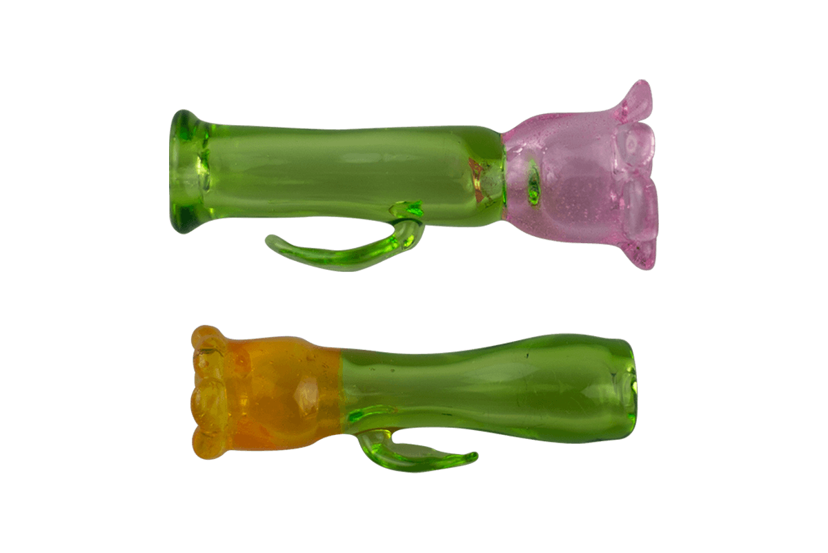 These fun Glass Tulip Chillums by Technicolor Tony offer a fun take on a tried and true discrete smoking option. Featuring light green "stems" with a leaf accent (to keep them from rolling off the table) as well as vibrant tulip bloom bowls. Made right here in Denver, Colorado these are a fun and stylish local glass option available for a great price!