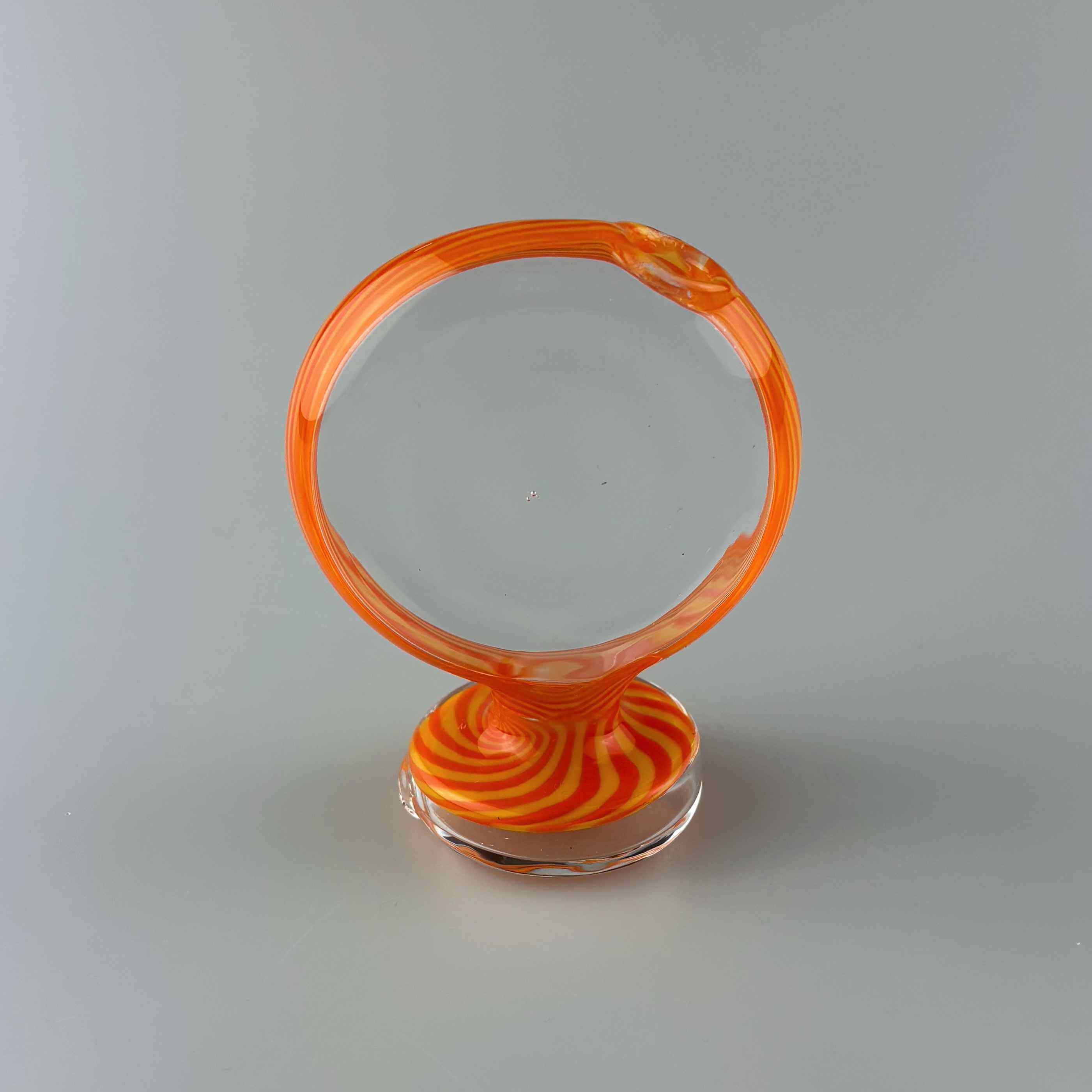 These beautiful Disc Puffco Peak Dry Tops by Technicolor Tony work on the Peak and Peak Pro as a stylish replacement for the stock glass. As a dry top it doesn't have any water inside, but cools your vapor through contact with the glass surfaces ensuring maximum flavor. Each top features a sleek clear disc accented by a ring of striking color around the edge of the disc as well as on the bade on the top.